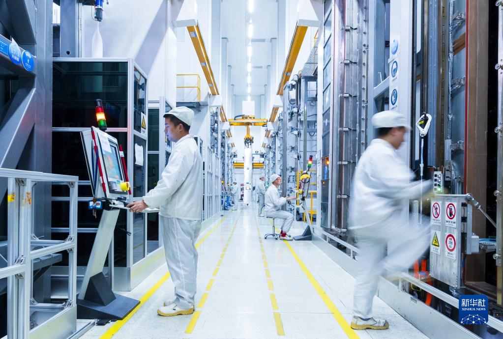 工人在位于蘇州市吳江區的亨通集團綠色光纖預制棒智能制造生產(chǎn)車(chē)間忙碌(2022年10月攝)。