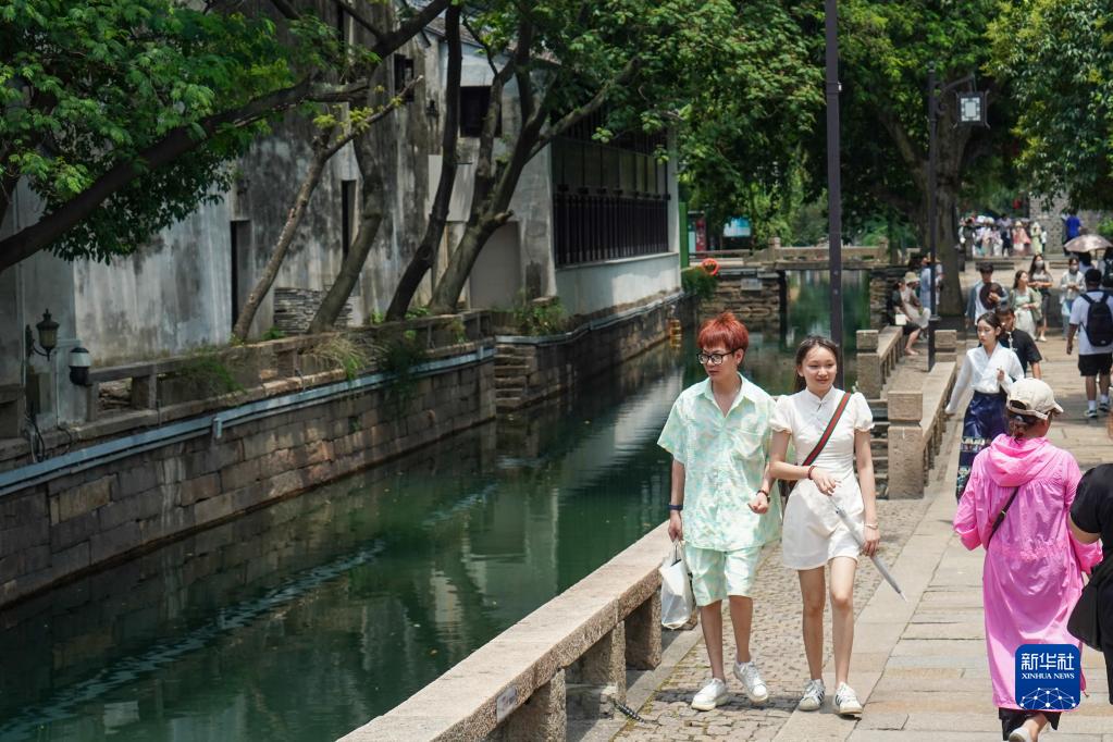 7月6日,游客在蘇州平江歷史街區休閑游玩。