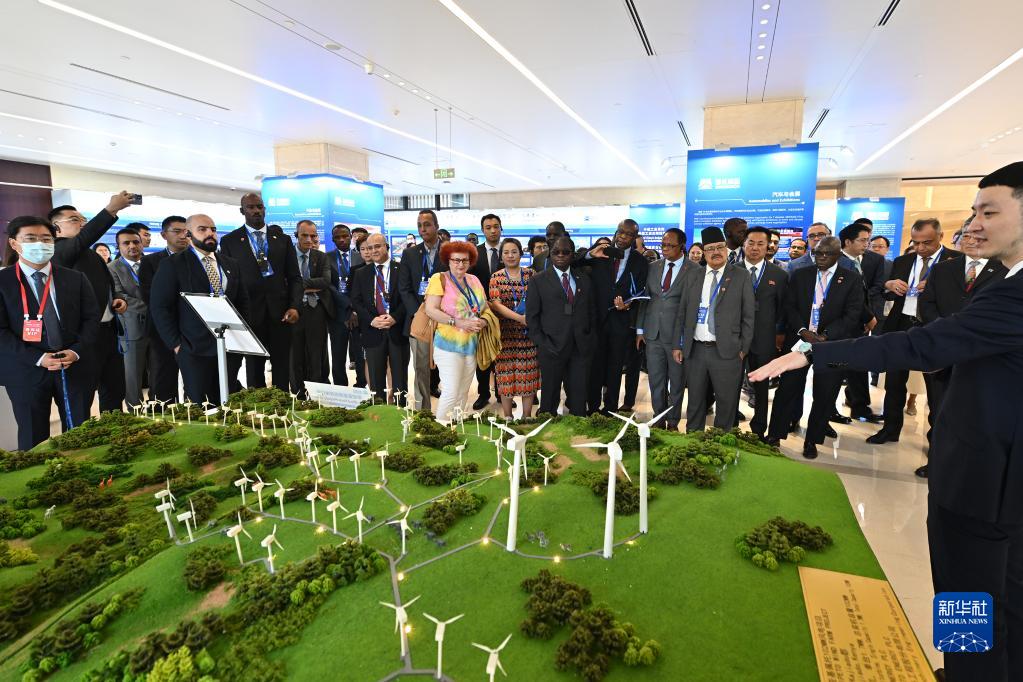 7月6日,駐華使節在國機集團國際化經(jīng)營(yíng)成果展廳內參觀(guān)由該集團承建的肯尼亞基佩托風(fēng)電項目沙盤(pán)。