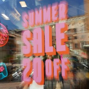 這是7月6日在意大利羅馬拍攝的夏季打折廣告牌。