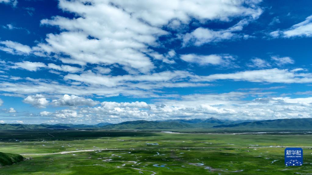 這是瑪曲縣阿萬(wàn)倉濕地景色(7月6日攝,無(wú)人機照片)。