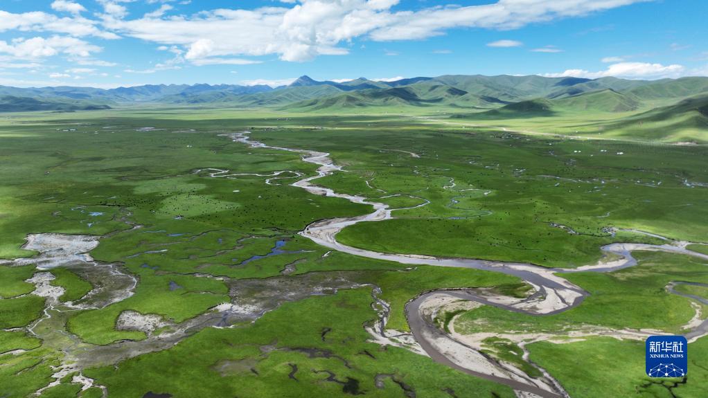 這是瑪曲縣阿萬(wàn)倉濕地景色(7月6日攝,無(wú)人機照片)。
