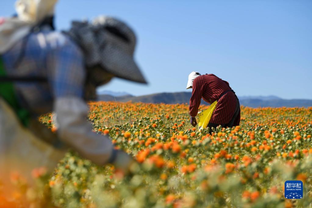 新疆裕民15萬(wàn)多畝紅花迎來(lái)收獲季
