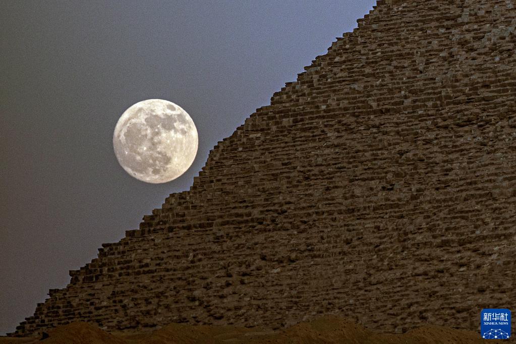 這是7月2日在埃及吉薩胡夫大金字塔旁拍攝的滿(mǎn)月。