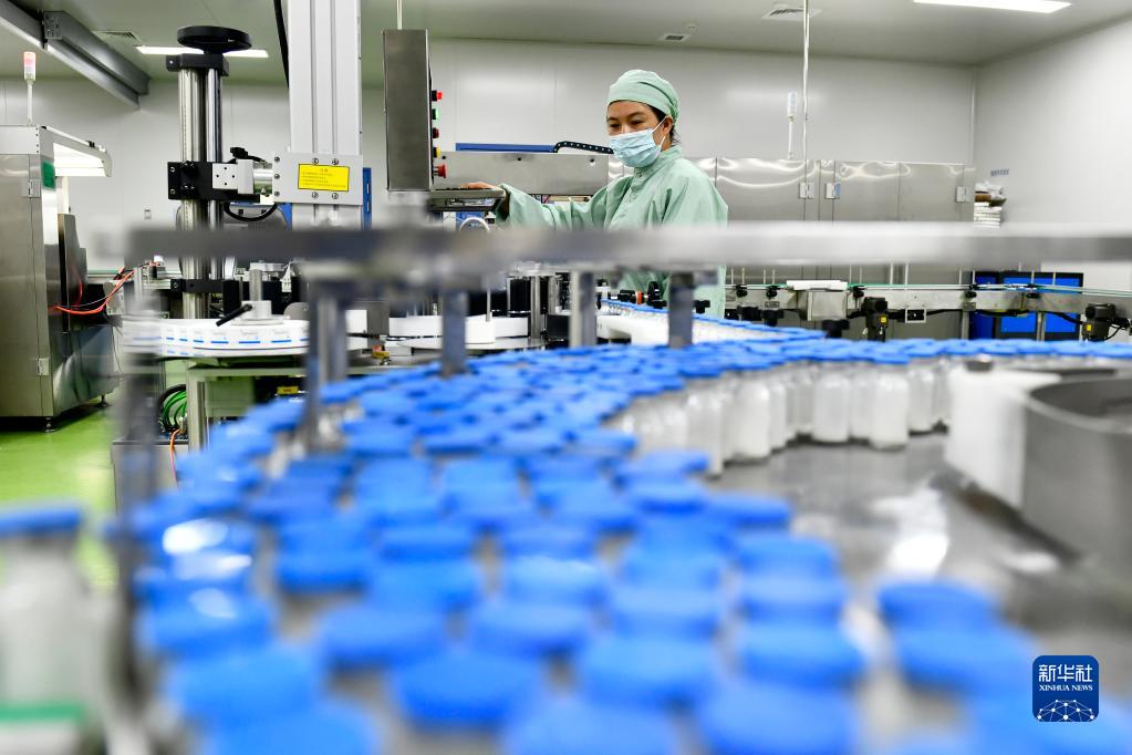 7月7日,在菏澤了未元生物醫藥大健康產(chǎn)業(yè)園,工作人員在抗生素生產(chǎn)線(xiàn)值守。