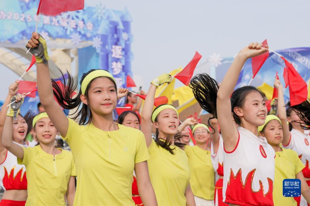 7月8日,在哈爾濱市太陽(yáng)島景區太陽(yáng)石廣場(chǎng),演職人員慶祝哈爾濱市獲得2025年第九屆亞洲冬季運動(dòng)會(huì )舉辦權。