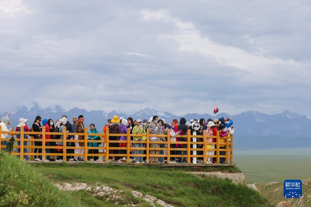 游客在巴音布魯克九曲十八彎景區參觀(guān)(7月6日攝)。