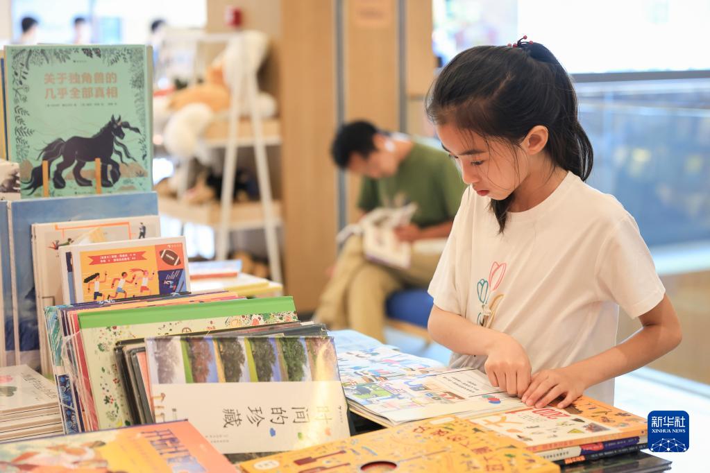 7月8日,小讀者在南京一家書(shū)店內閱讀。