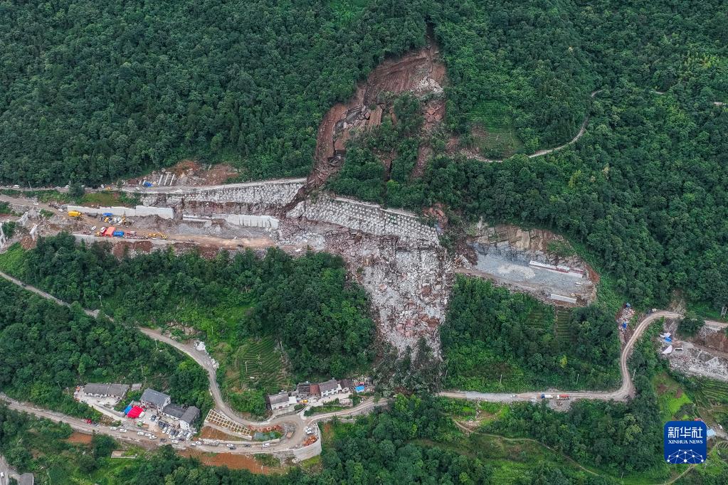 7月9日拍攝的滑坡現場(chǎng)(無(wú)人機照片)。