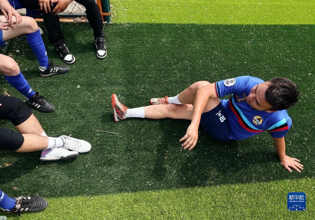 6月27日,在錫尼河鎮組織的一場(chǎng)友誼賽中,巴達瑪斯仁和隊友們聊天。