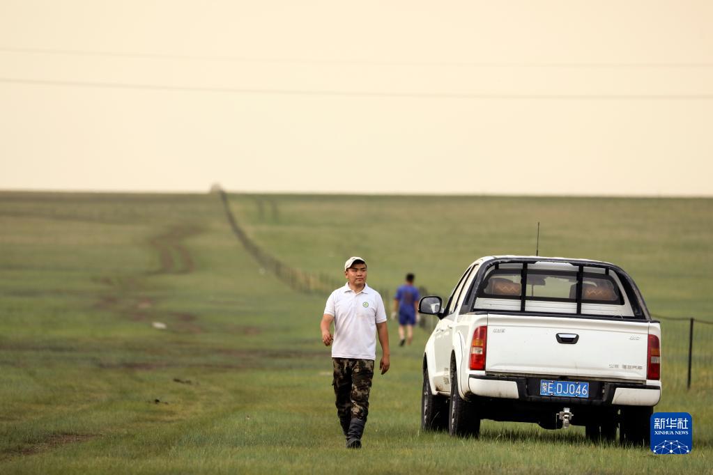 6月26日,巴達瑪斯仁巡查草場(chǎng)圍欄。