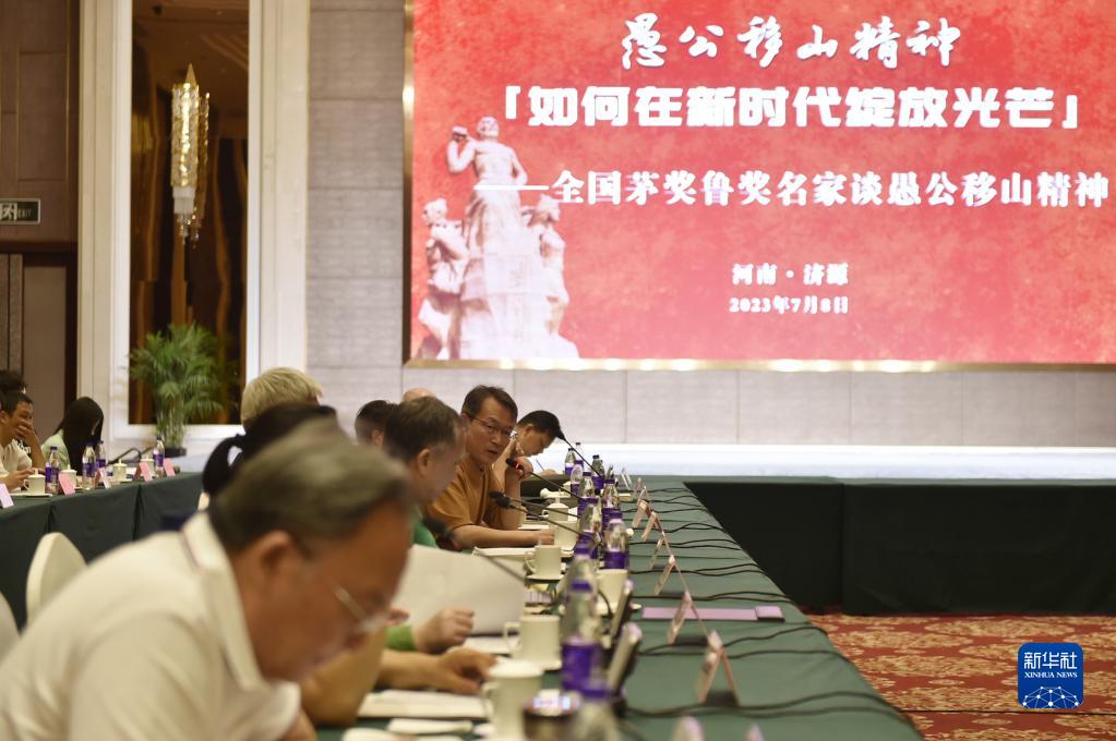 這是7月8日在河南省濟源市拍攝的愚公移山精神座談會(huì )現場(chǎng),濟源是愚公移山神話(huà)故事的發(fā)源地。