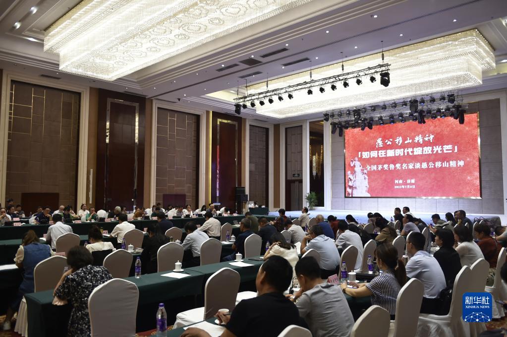 這是7月8日在河南省濟源市拍攝的愚公移山精神座談會(huì )現場(chǎng),濟源是愚公移山神話(huà)故事的發(fā)源地。