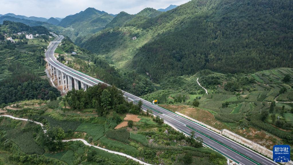 車(chē)輛行駛在德余高速公路寬坪至楊家坳路段(7月10日攝,無(wú)人機照片)。