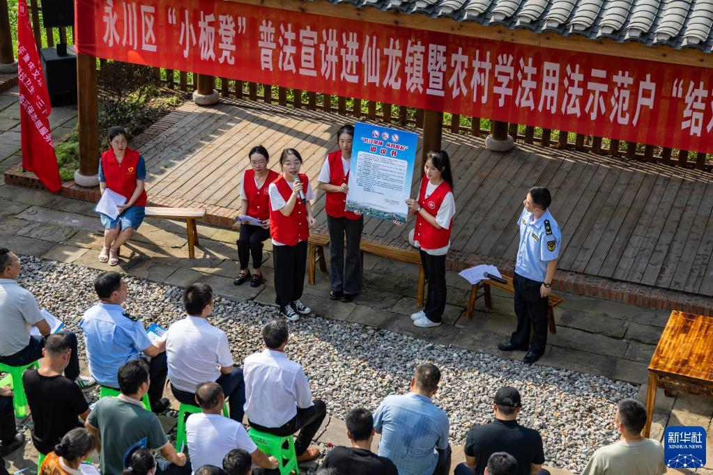 當日,重慶市永川區農業(yè)綜合行政執法支隊和永川區司法局、重慶文理學(xué)院聯(lián)合成立的“小板凳”普法宣講隊,走進(jìn)仙龍鎮雙星村,開(kāi)展普法宣講活動(dòng)。宣講隊通過(guò)政策講解、案例分析、結對幫扶等形式,為當地村民普及涉農相關(guān)法律法規。