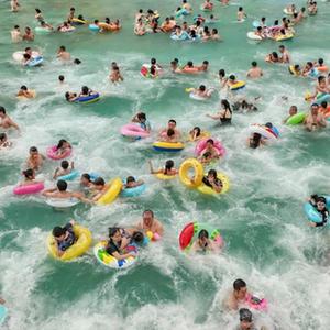 7月10日,游客在四川省遂寧市大英縣一旅游度假區戲水(無(wú)人機照片)。