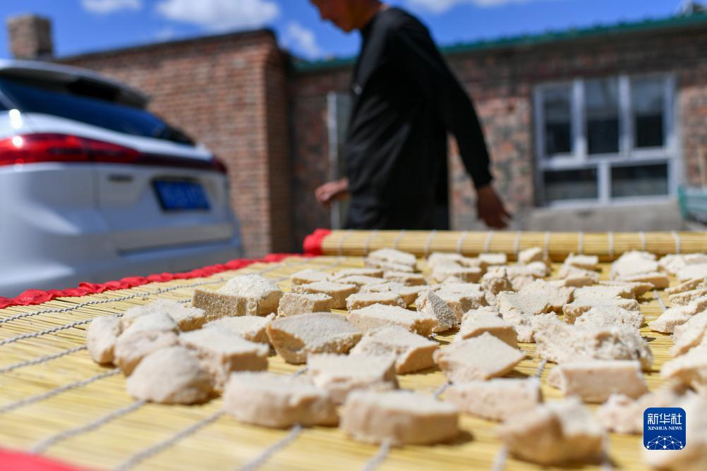 這是巴哈提在家制作的酸奶疙瘩,主要向過(guò)往游客出售,售價(jià)為每公斤100元(7月6日攝)。她家門(mén)口就是318省道,是新疆塔城地區一條熱門(mén)自駕游線(xiàn)路。