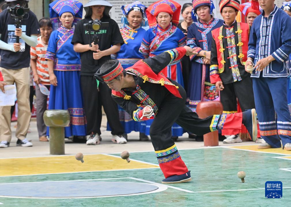 當日,廣西大化瑤族自治縣的各族群眾歡聚一堂,通過(guò)打陀螺、跳民族舞蹈、射弩等豐富多彩的民間文娛活動(dòng),歡慶一年一度的傳統節日——“祝著(zhù)節”。