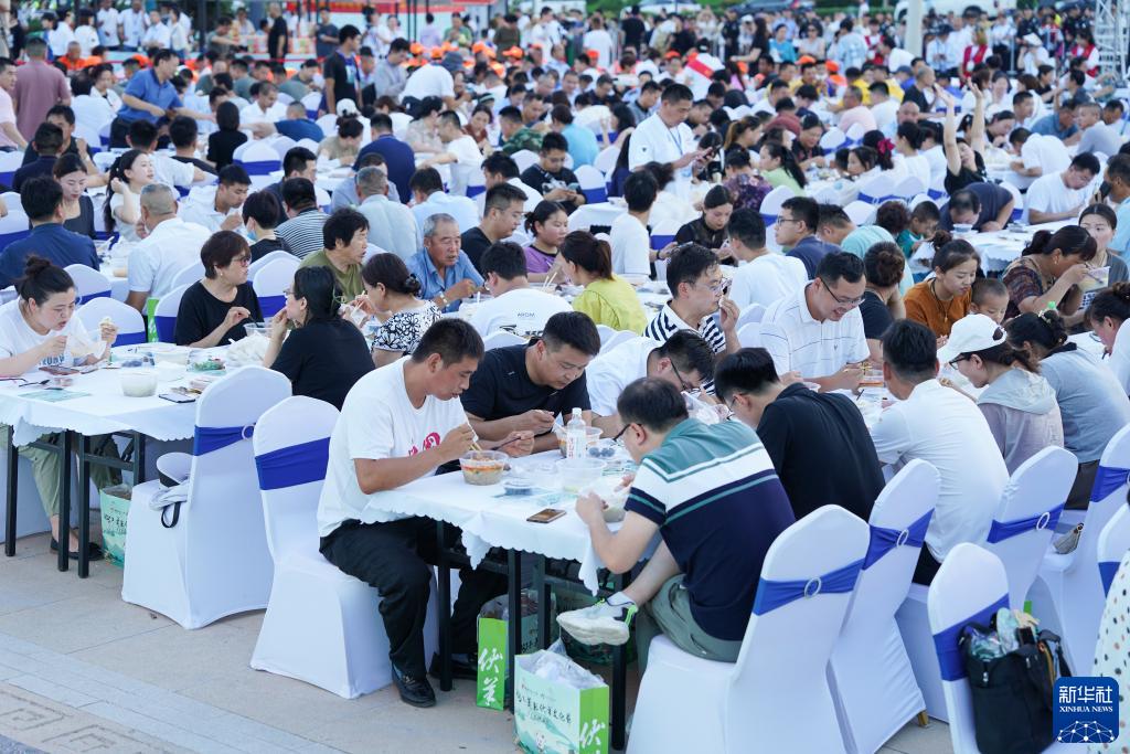 7月11日,在安徽省宿州市蕭縣水墨圣泉古鎮廣場(chǎng),人們品嘗羊湯。