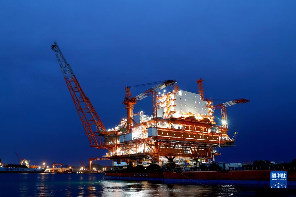 7月10日,渤中19-6凝析氣田一期項目中心平臺在青島成功裝船,即將奔赴渤海西部海域,進(jìn)入海上安裝和聯(lián)調階段。新華社發(fā)(杜鵬輝 攝)