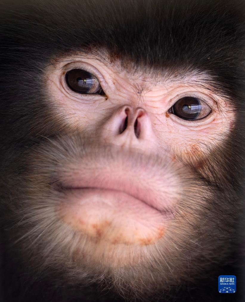 這是7月8日拍攝的怒江金絲猴。這只金絲猴從小就被猴群拋棄,如今寄養在姚家坪管護站的野生動(dòng)物救護中心。新華社記者 費茂華 攝