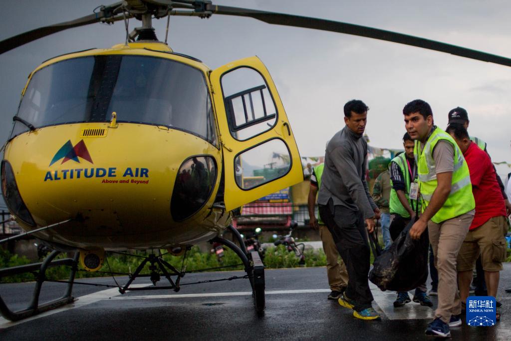 7月11日,載有墜機事件遇難者遺體的直升機抵達尼泊爾加德滿(mǎn)都。