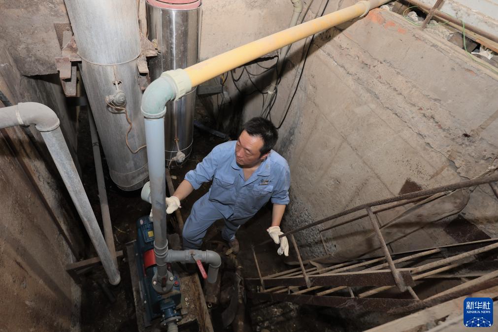 7月11日,鐵路上海站綜合車(chē)間司爐工張平巡視管道井中蒸汽管道是否有蒸汽泄露。