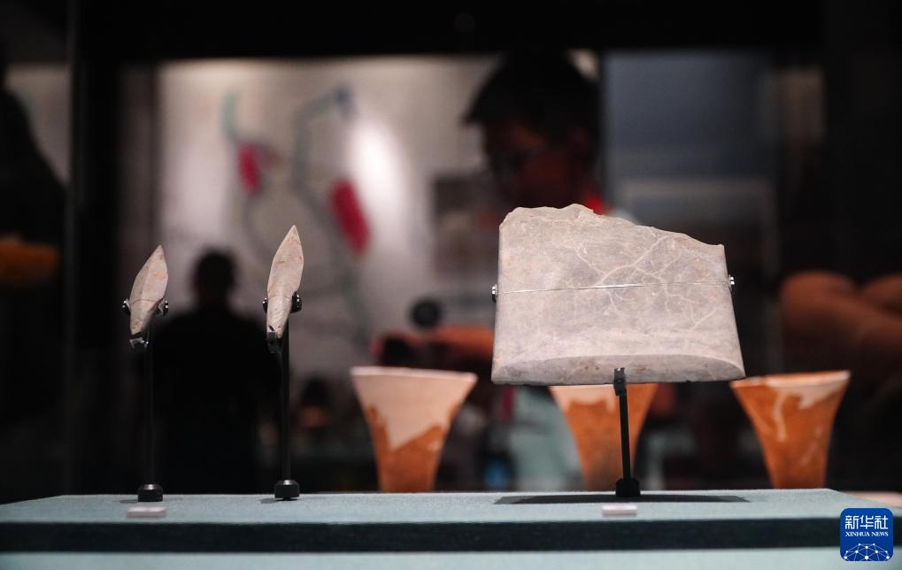 成果展上展出的浙江省文物考古研究所藏良渚文化石器(7月12日攝)。