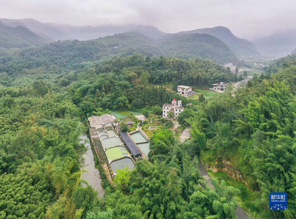 這是最初周亮與父親一起創(chuàng )辦的宜賓珍稀水生動(dòng)物研究所富興繁育基地(2021年10月12日攝,無(wú)人機照片)。新華社記者 王曦 攝