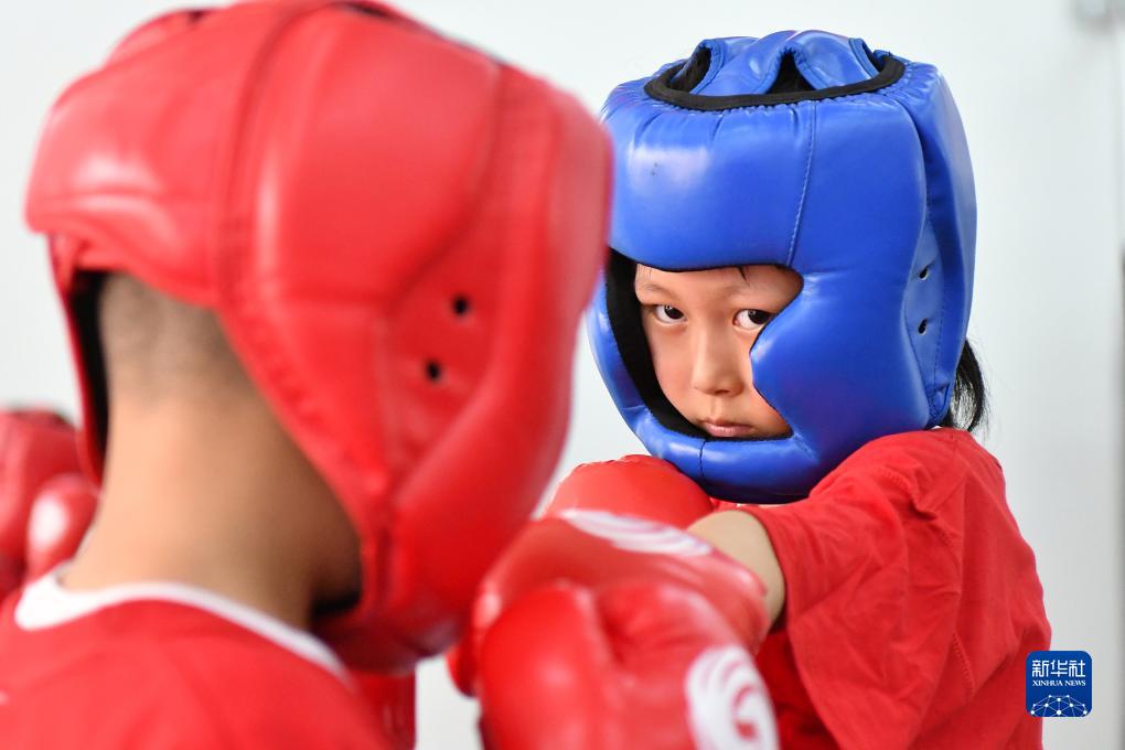 7月12日,小朋友在山東省煙臺市福山區一家搏擊訓練館進(jìn)行搏擊訓練。