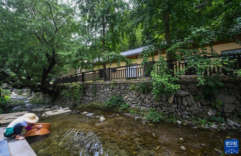 7月13日拍攝的湍口鎮湍源里民宿集群。這個(gè)由閑置糧倉和村民舊居改造而成的民宿由當地新鄉賢出資打造并經(jīng)營(yíng),為村集體增加租金收入300萬(wàn)元,帶動(dòng)100余人次就業(yè)。