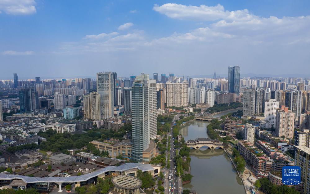 俯瞰流經(jīng)成都市主城區的錦江一角(6月9日攝)。新華社記者 江宏景攝