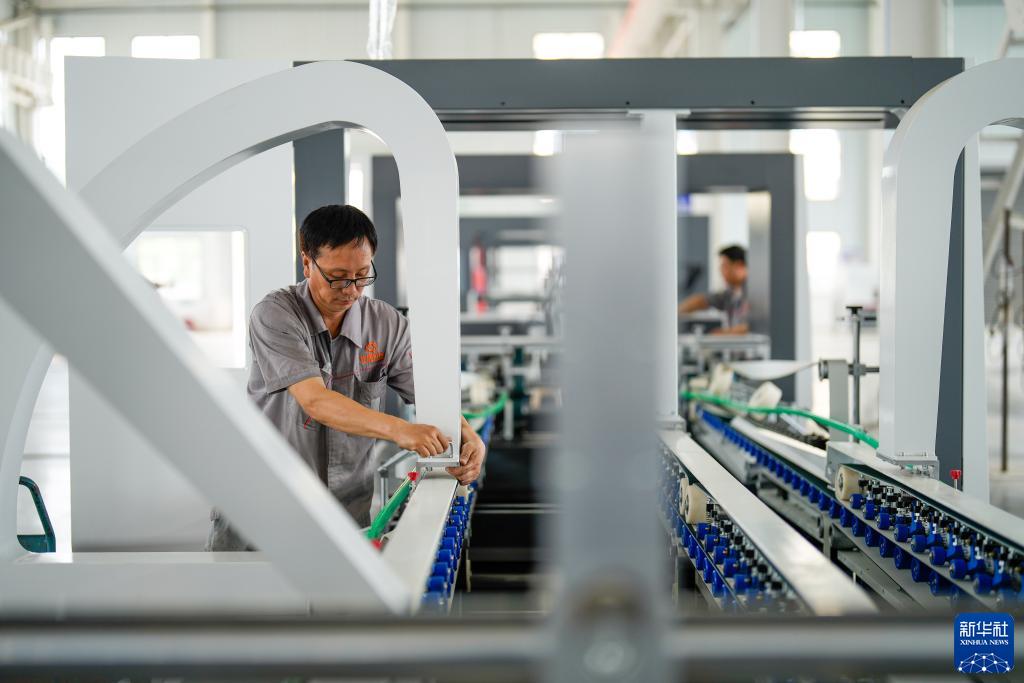 7月13日,河北省玉田縣一家印刷包裝機械制造企業(yè)的工人在生產(chǎn)線(xiàn)上工作。