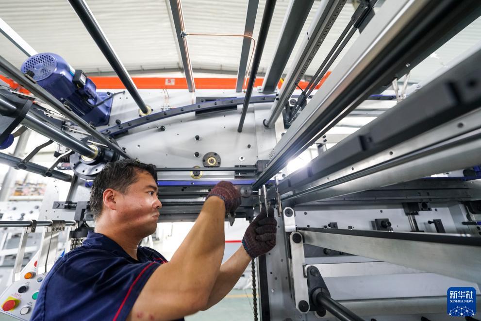 7月13日,河北省玉田縣一家印刷包裝機械制造企業(yè)的工人在調試產(chǎn)品。