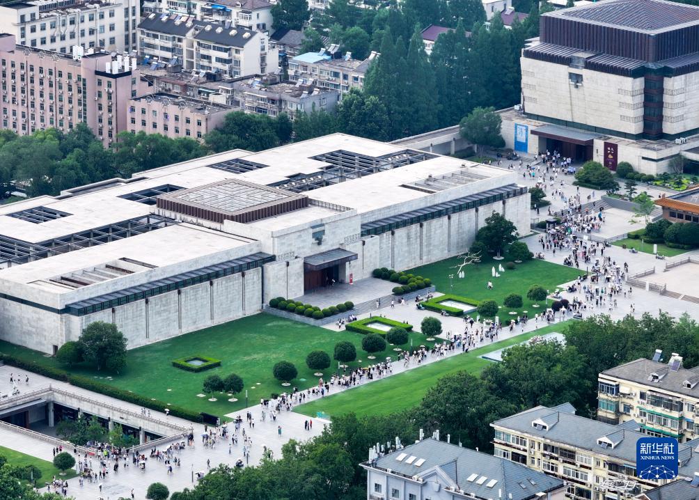 參觀(guān)南京博物院的觀(guān)眾絡(luò )繹不絕(無(wú)人機照片,6月11日攝)。