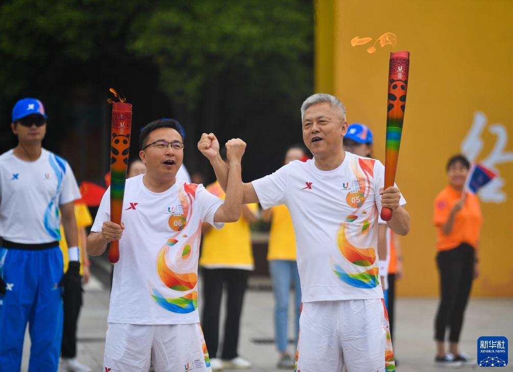 當日,成都第31屆世界大學(xué)生夏季運動(dòng)會(huì )火炬傳遞在西南財經(jīng)大學(xué)(柳林校區)校園內舉行。