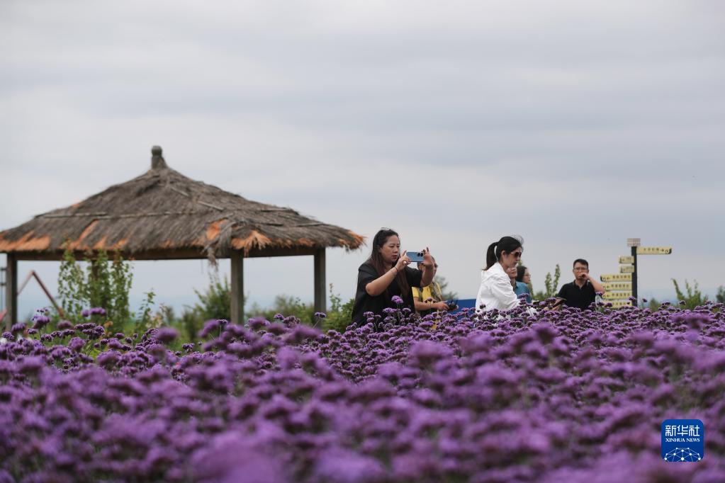 7月14日,游客在貴州省貴陽(yáng)市花溪區石門(mén)花海景區賞花游玩。新華社發(fā)(袁福洪 攝)