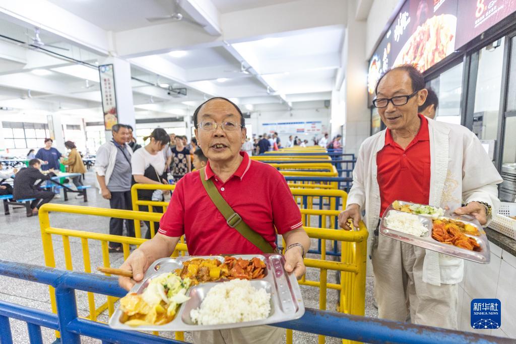 7月14日,在重慶市萬(wàn)州三中江南校區臨時(shí)安置點(diǎn)內,轉移安置人員在排隊取餐。