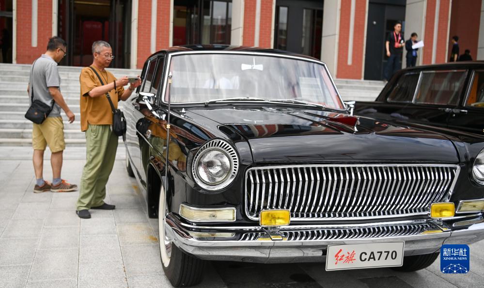 7月15日,市民在位于吉林長(cháng)春的紅旗會(huì )堂前觀(guān)賞展出的紅旗汽車(chē)。