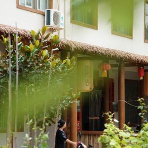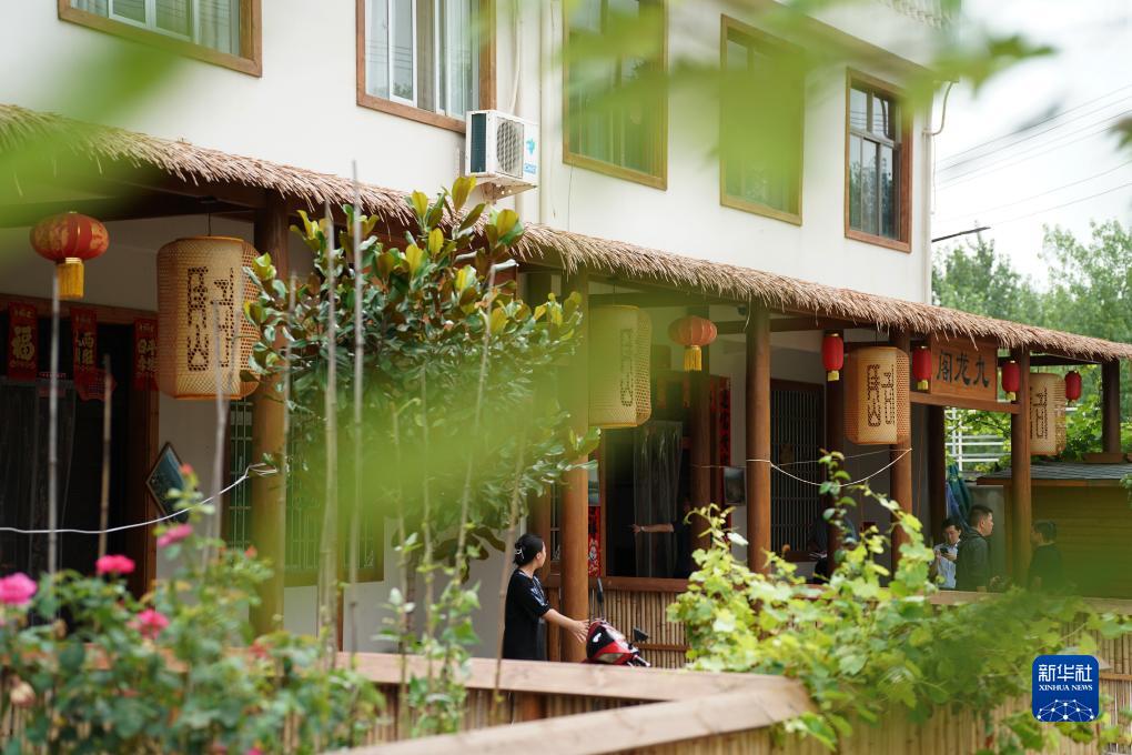 周至縣駱峪鎮駱峪村內裝飾一新的民宿(7月14日攝)。