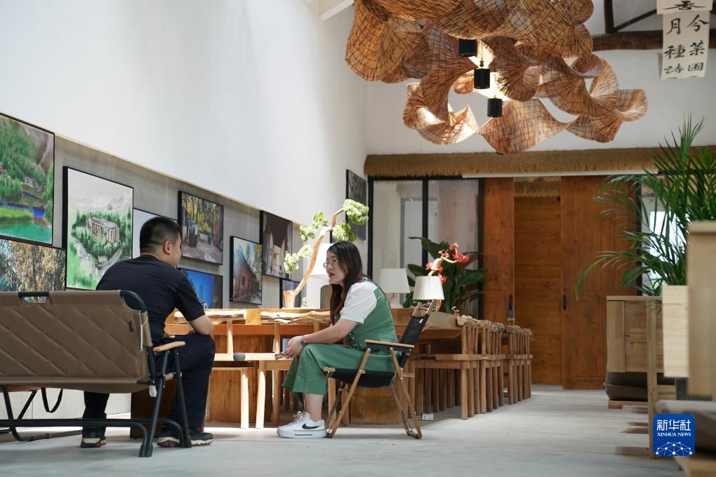 7月14日,游人在周至縣駱峪鎮紅旗村的鄉村會(huì )客廳內休息。