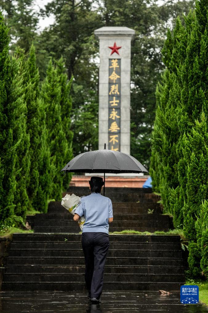 雨中,一把黑傘,一束白花,一身警服的尹銘燕拾級而上,走向云南德宏州隴川縣烈士陵園的最高處,那里長(cháng)眠著(zhù)她的哥哥尹銘志。