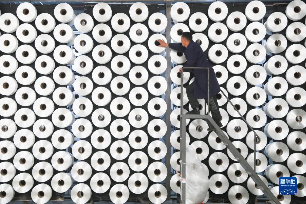 在浙江省杭州市臨安區天目山鎮一家紡織企業(yè),工人在車(chē)間里忙碌(3月2日攝)。