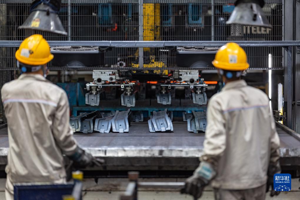 7月16日,在位于重慶市兩江新區的重慶至信實(shí)業(yè)集團有限公司熱壓車(chē)間,工作人員等待搬運下線(xiàn)零件。