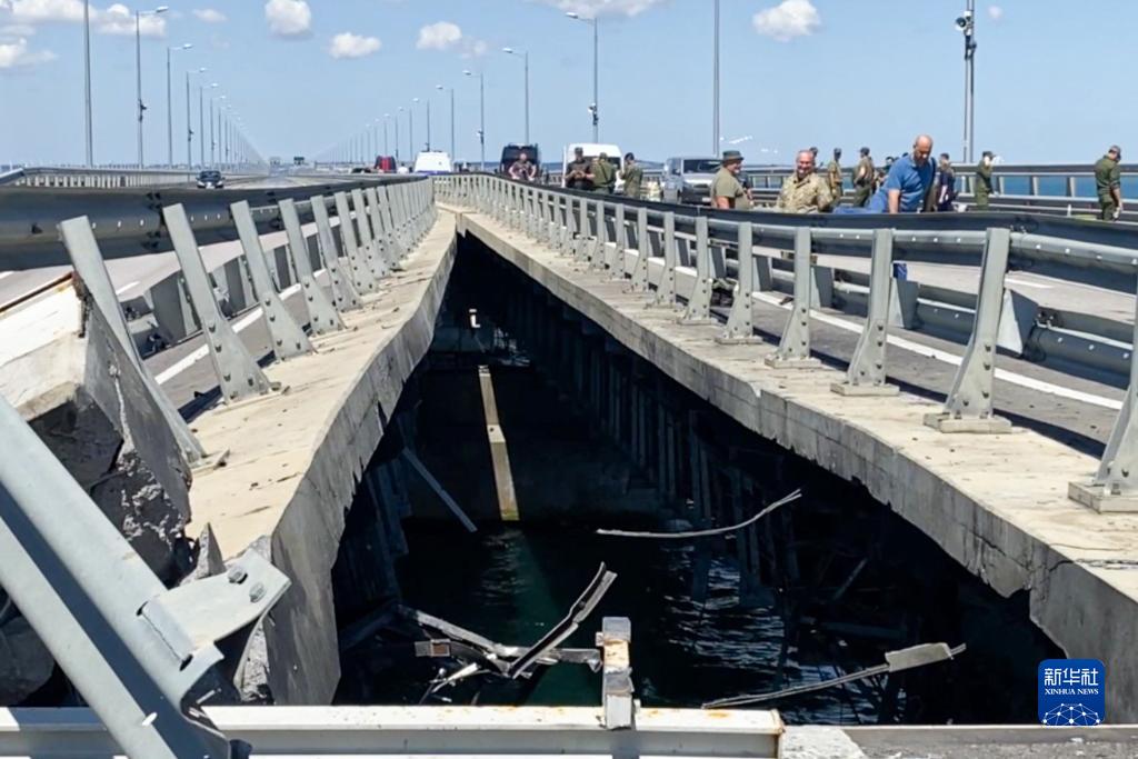 這是7月17日拍攝的克里米亞大橋受損區域(視頻截圖)。