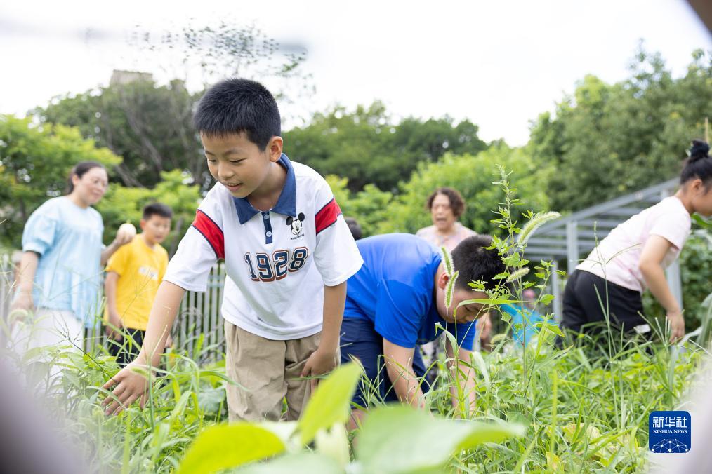 7月17日,在浙江省湖州市南太湖新區新風(fēng)實(shí)驗小學(xué)教育集團清河校區勞動(dòng)興趣課上,暑期托管班的學(xué)生在校農場(chǎng)里采摘甜瓜。