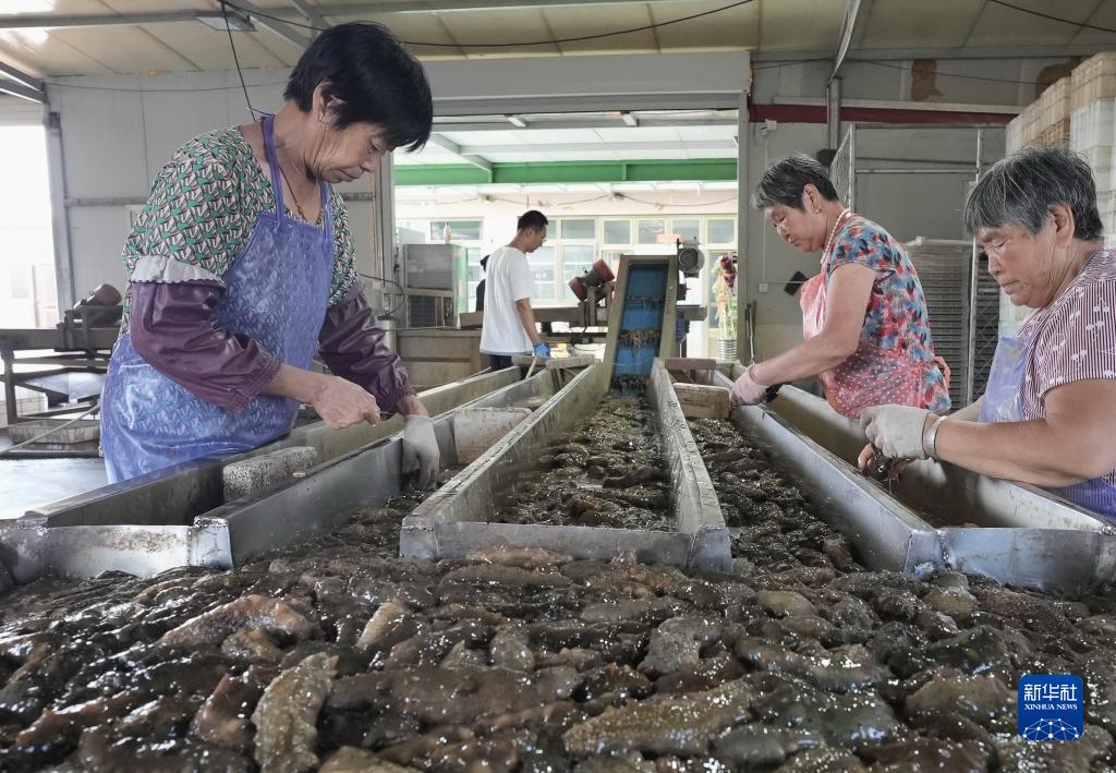 7月17日,河北省樂(lè )亭縣姜各莊鎮前營(yíng)村一海參養殖合作社社員在清洗加工海參。