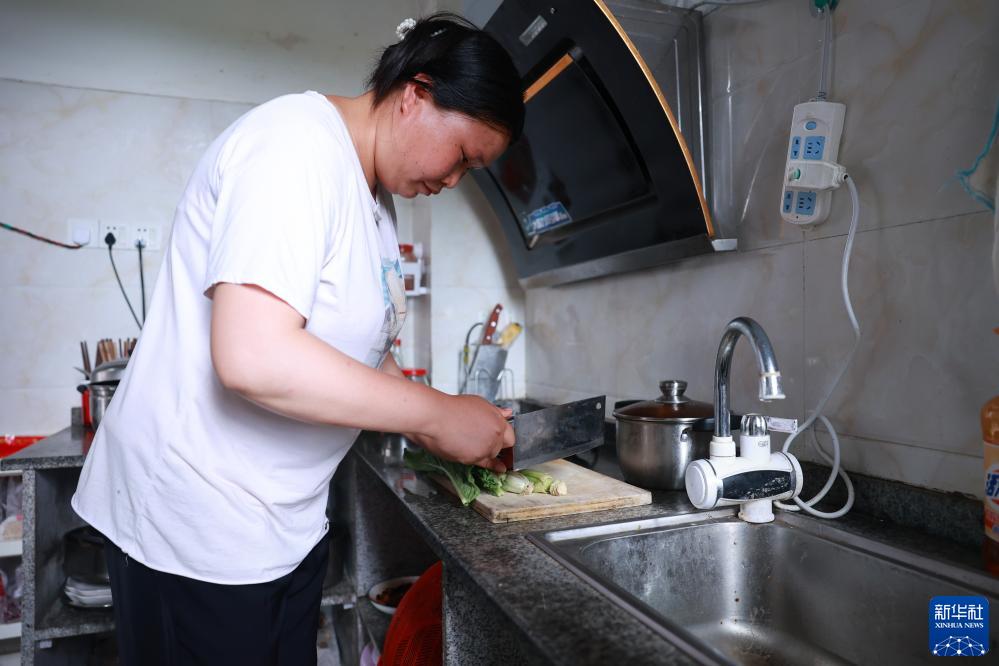 柏楊林街道搬遷居民龍如美在家中做飯(7月13日攝)。