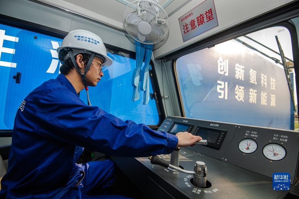 7月18日,駕駛員在氫能源地鐵施工作業(yè)車(chē)上試駕。