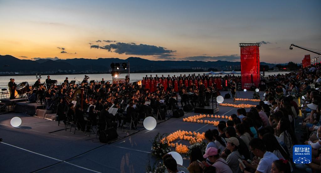 伴著(zhù)晚霞,第七屆聶耳音樂(lè )周昆明分會(huì )場(chǎng)開(kāi)幕式在滇池畔舉行(7月17日攝)。